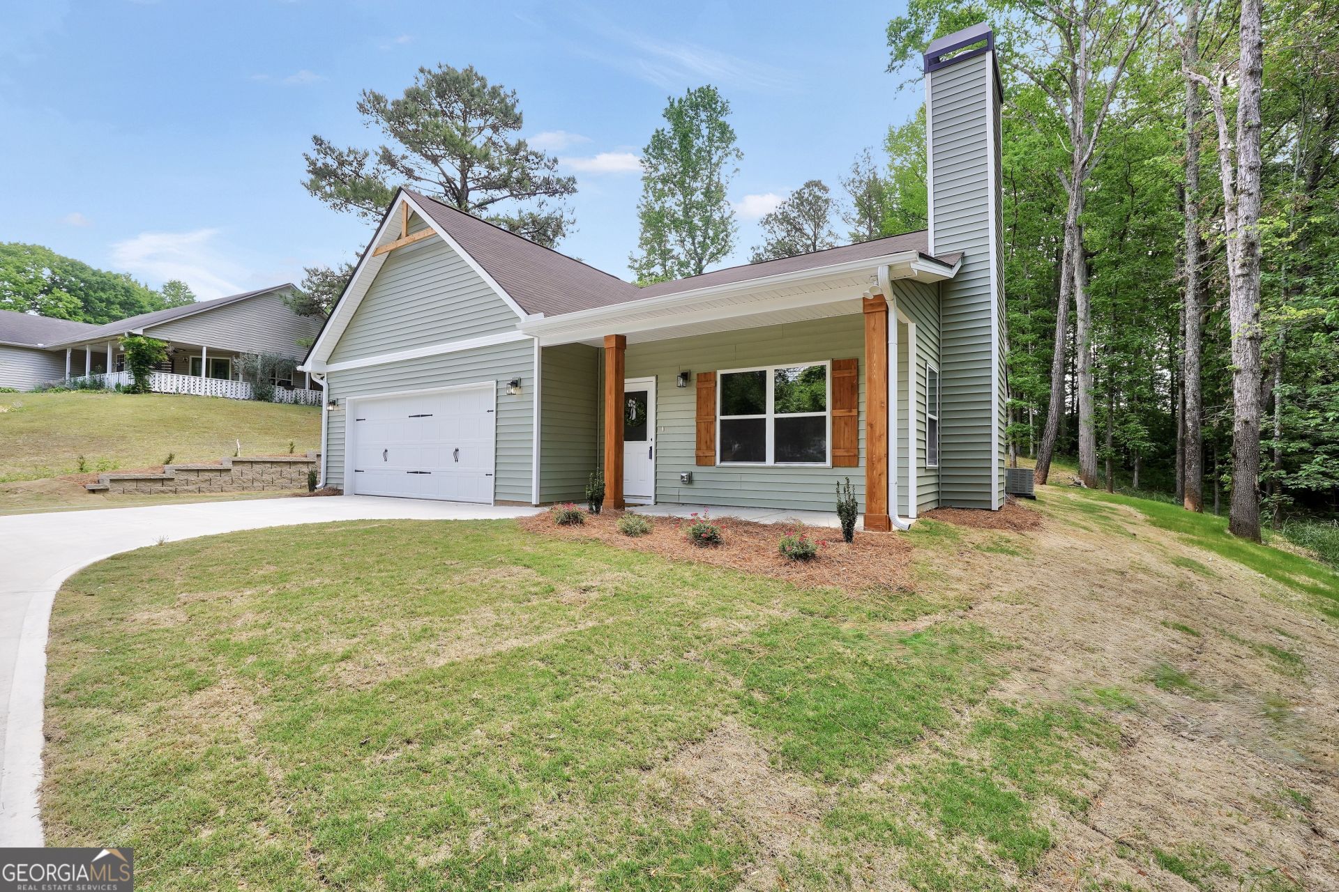 Welcome to 65 Lakeside Dr! This beautifully crafted new construction home, offering the perfect blend of modern design and peaceful surroundings. Featuring 3 spacious bedrooms and 3 full bathrooms, this home sits on a generous lot just under one acre, complete with fresh landscaping and a brand new retaining wall for added curb appeal and functionality. Enjoy serene outdoor living with a creek running alongside the property and picturesque lake views just across the street. Inside, the open-concept layout seamlessly connects the living and dining areas, creating an inviting space ideal for both everyday living and entertaining. The kitchen is a standout, showcasing stylish shaker cabinets, sleek quartz countertops, tile backsplash, and modern black hardware and lighting. Durable LVP flooring flows through the main living areas, while upgraded carpet adds comfort to the bedrooms. The spacious primary suite offers a relaxing retreat with a walk-in closet and a private ensuite featuring a double vanity and a walk-in shower. Thoughtfully designed with both style and functionality in mind, this home is ready to welcome its first owners.